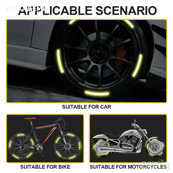 Светлоотразителни самозалепващи стикер лепенка за джанта на кола автомобил джип ван пикап камион мот → Обява 37360201