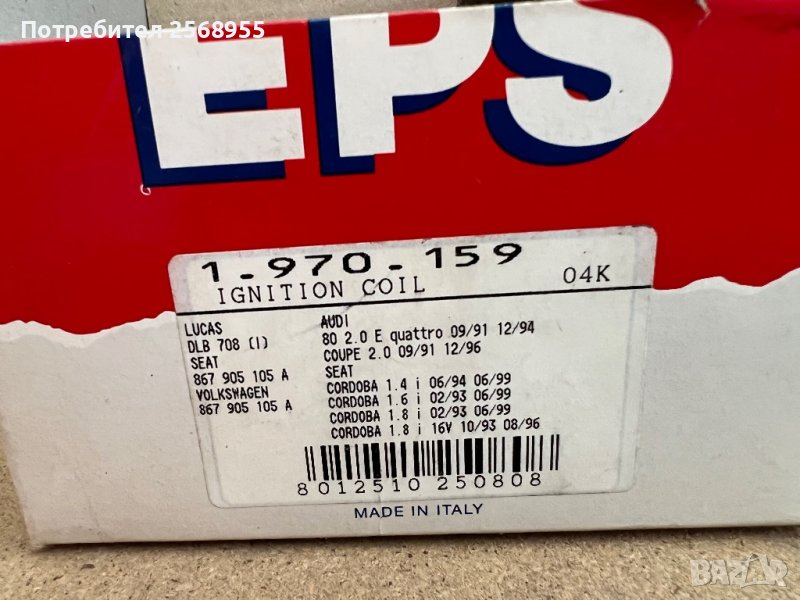 1970159 EPS Запалителна бобина VW Passat B3/B4 / SEAT Toledo / Ibiza / 1988-1999 / OE 867905105A → Обява 37364578