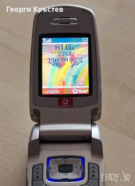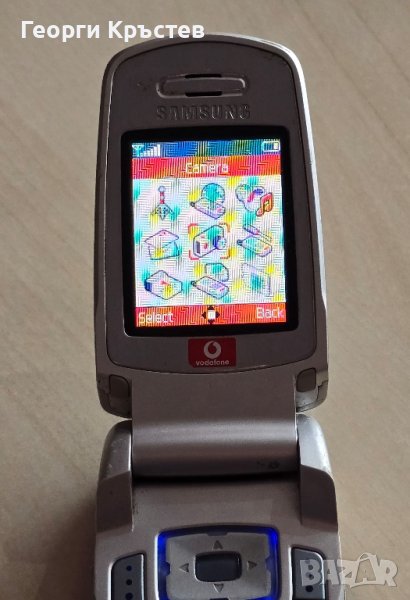 Samsung E710 - добър външен вид, включва се и работи, тестван с А1, буксата за зареждане е разбита, не зарежда, няма БГ меню, дисплеите и лентовия кабел са ОК, клавиатура, камера и слушалка са ОК, микрофона не работи, не Ви чуват, стегнат и активен капак, отпред металното на дисплея е разлепено и отзад държача за батерията е счупен, без батерия и зарядно.