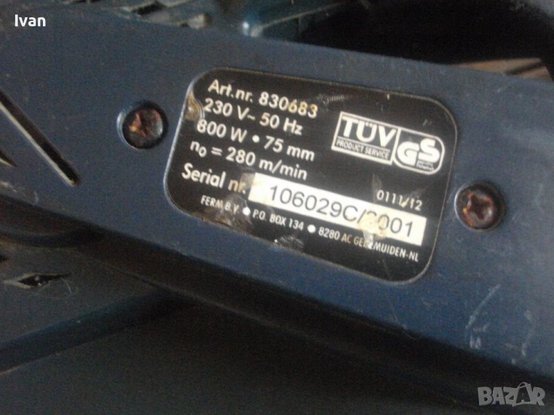 ОПИСАНИЕ на тъмносин 800 вата холандски Топ Крафт. Професионален мощен 800 ватов лентов шлайф,модел на Топ Крафт.Оригинално холандско профи производство,упоменато на маркировките-2001г. Марка и модел-Top Craft TBS 800. Машината е със запазен външен вид и отлично техническо състояние. Работи много добре.Силно, мощно, бързо и ефективно при работа. Няма никакво искрене на ниво четки,ротор,статор,няма никакви вътрешни смущаващи шумове като тракане,виене,свистене. Не изхвърля шкурката навън. Мощност на мотора-800 вата,скорост-280м/минута. Размер на шкурковата лента-стандартен-75х533 мм.Автостоп действащ,на машината.Към машината има 1 брой НОВА НЕМСКА шкурка, универсална - дърво, метал. Налична нова платова торба с цип за конектора на отпадъчен прах.