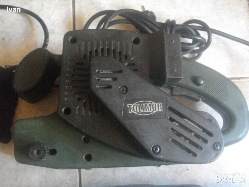 ОПИСАНИЕ на зелен лентов шлайф 810 вата Тулимър. 810 ватов голям, масивен лентов шлайф, немски профи модел на Толимър. Марка и модел - Tolimor TBS810. Производство оригинално 2003 г. Германия - Hamburg. Машината е почти нова ,с много запазен външен вид, много малко е работено с нея. В отлично техн.състояние. работи много добре - силно ,мощно ,бързо и ефективно, при работа. Мощност на мотора - 810 вата, скорост - 220 м/мин. За шкуркови ленти размер стандартен - 76х 457мм. Гумирано покритие на задният амортисьор. Автостоп на спусъка. Горна равна повърхност на корпуса, за обърнато шлайфане. Към машината има 1 бр. нова немска оригинална шкуркова лента .- универсална - дърво - метал.