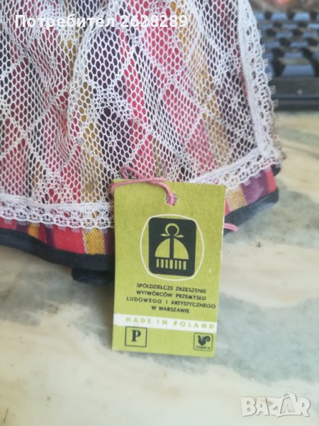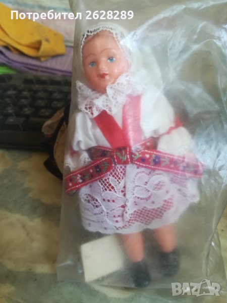 Две много стари кукли. Полска национална носия и на етикета пише 1975г. Има нужда от почистване в предната част - лежала е дълго време в отворена кутия по гръб. Втората е Чехословакия и не е разпечатвана - нова.
