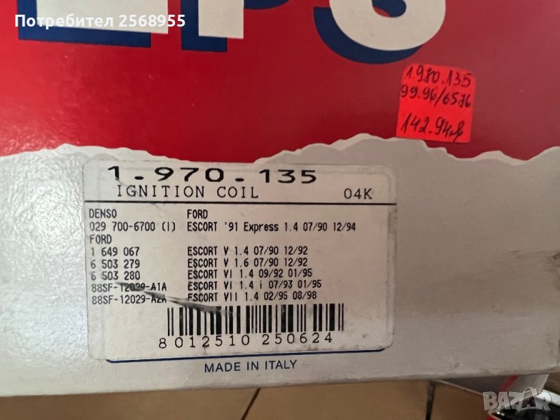 1970135 EPS Запалителна бобина FORD Sierra Escort Fiesta Orion / MAZDA 626 1989-2002 928F-12029-CA