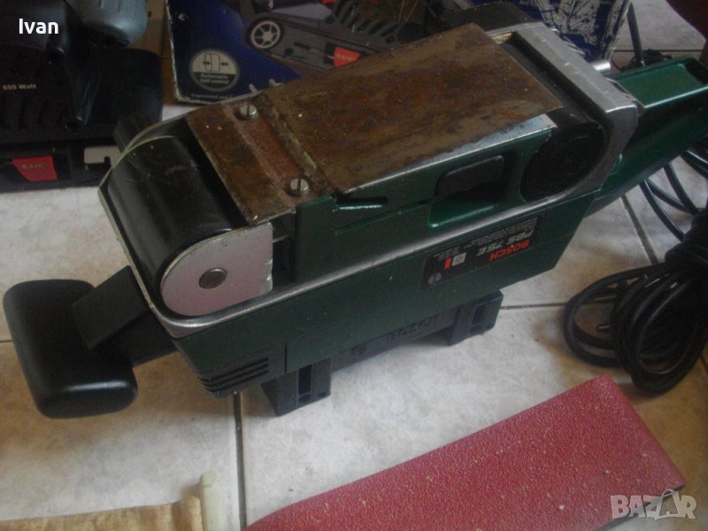 ОПИСАНИЕ на швейцарски оригинален Бош - 620 вата , защита 3,0 ампера, с оригинална на марката стойка за обърнат стоеж - цена 249 лв. СНЕТ ОТ ПРОДАЖБА. Почти нов, силен и мощен, с голяма регулируема скорост масивен лентов шлайф, оригинален швейцарски модел на марката в ОТЛИЧНО техническо/работно състояние и с оригиналната си стойка маркирано с логото на марката за обърнато шлайфане, също и с оригинлната си платова торба за прах..