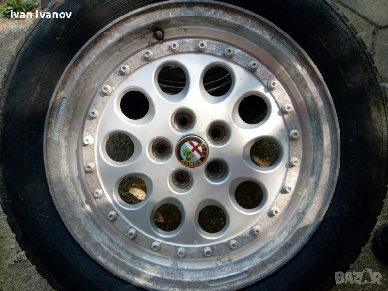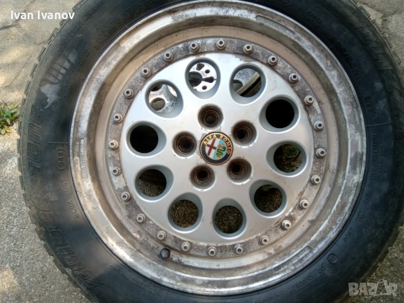 4 бр. 5х98 ЕТ32 без заварки. Снимките са актуални. И в момента са на колата и карам с тях лятото. Гумите са никакви, последна спирка, не стават, доизносвам ги. От 75-ца, 1,8 турбо еволюционе, мисля, че и SZ и TZ са с такива, също и 164 с петте болта. Не се коментира цената. Държа да е вземане от място. В момента са на 156-та ми.