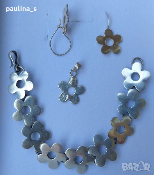 сребърни бижута - цветя, от обеци, висулка и гривна. Гривната е носена само, дължина 18см. Не се делят и цената е крайна за всички артикули. Моля, разгледайте и другите обяви и последвайте профила. Приятно разглеждане. Може да създадете пакет и да използвате доставката, тогава ще направя отстъпка от общата цена. При единична поръчка, цената не се коментира по никакъв начин, продажбата е с благотворителна цел! За лечение! Благодаря за вниманието и отделеното време 🙂