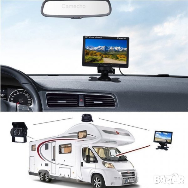 7-инчов HD TFT LCD широкоекранен монитор за обратно виждане IR вискозащитна камера - Автомобилен водоустойчив обектив, с индивидуални инфрачервени (IR) LED.