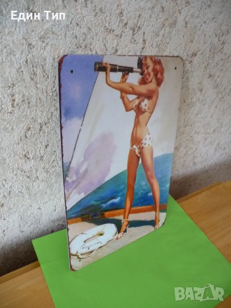 Метална Табела момиче бански лодка яхта спасителен пояс море → Обява 37376335