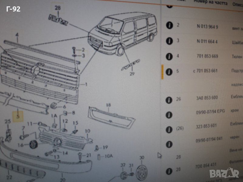701853661**NEU**VAG**VW**T 4**ПРЕСТИЛКА ПРЕДНА СРЕДНА ****