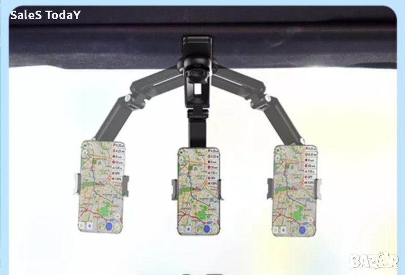 Стойка за телефон с щипка , 360, за кола, за подглавник, огледало, сенник