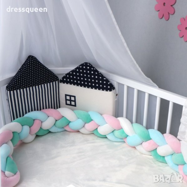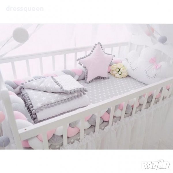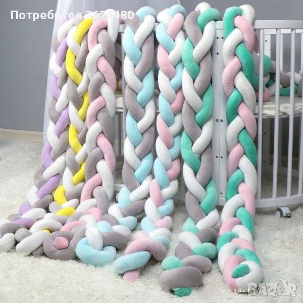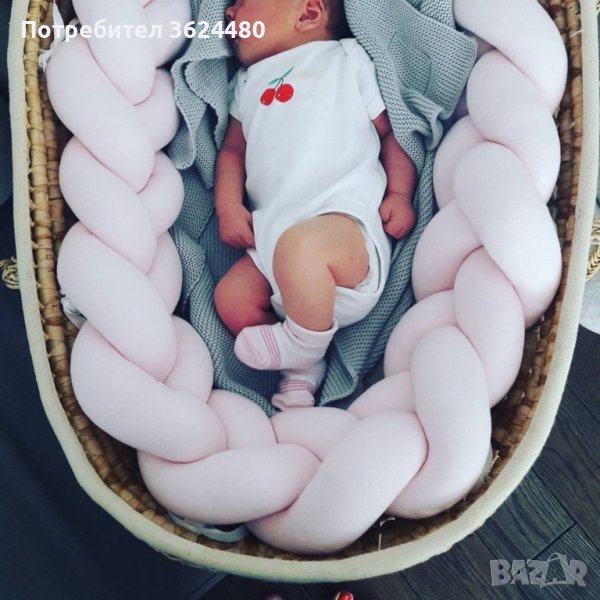 Плетеният обиколник идва с подходящи връзки, които позволяват гъвкаво прикрепване към леглото на желаните места.