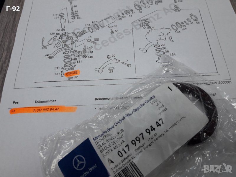 A0179979447**NEU**MERCEDES-BENZ**СЕМЕРИНА ЗА КОРМИЛНАТА КУТИЯ **