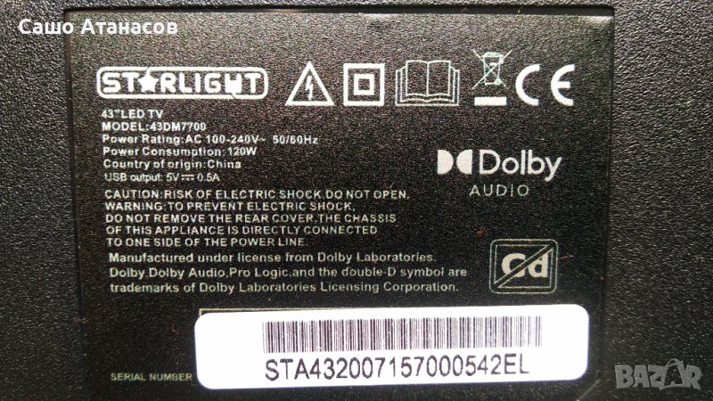 Модули от телевизор STARLIGHT 43DM7700 със счупена матрица (панел CX430DLEDM LE-43S1 )