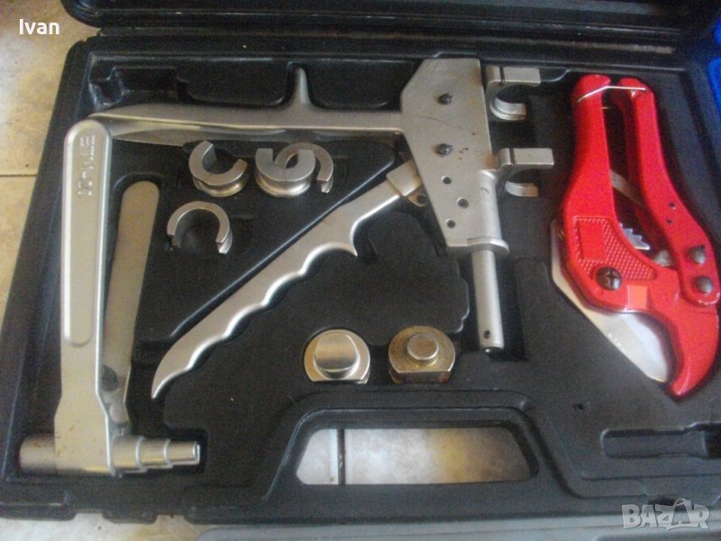 ОПИСАНИЕ на сив комплект. Професионален ПЪЛЕН комплект за разширяване на тръби /меки и полутвърди/ размер от по-малък към по-голям - 12 мм - 16 мм - 20 мм, френско производство. Комплекта не е ползван, нов е - неупотребяван и неизполван