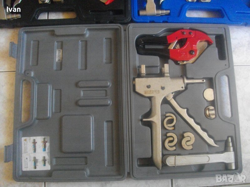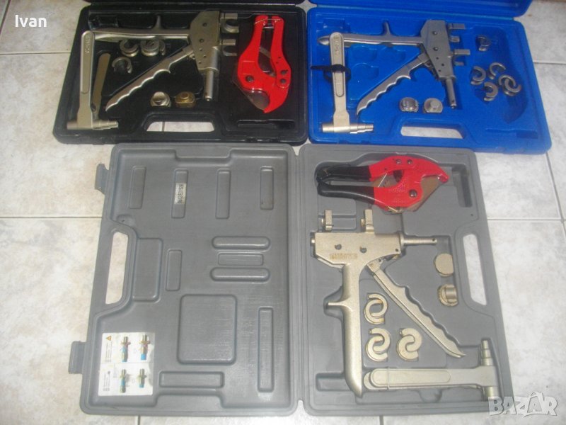 Различни комплекти Калибратор/Експандер за разширяване на полутвърди тръби размери 12 мм - 16 мм - 20 мм. Комплектите са френско произовдство - професионално. Вътре комплектите са нови. Куфарите имат леко захабен вид.