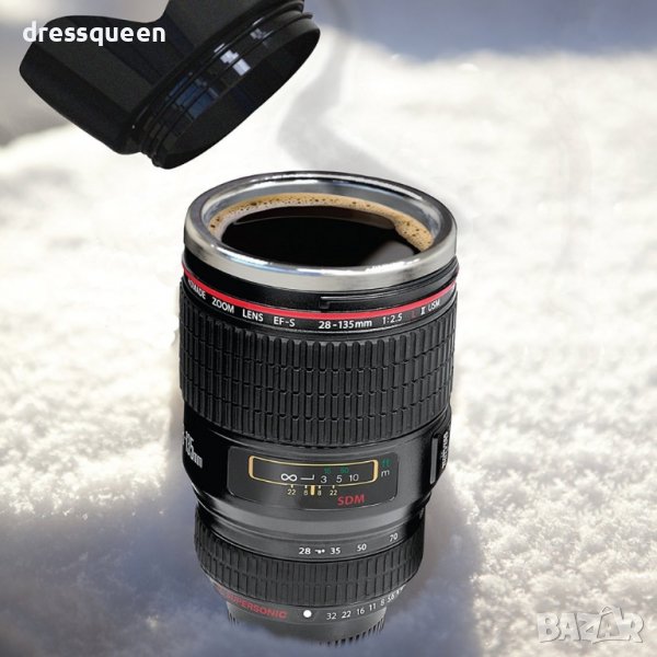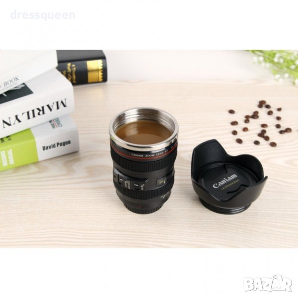 – капаче спомагащо за запазване на топлината на Вашата напитка в термо чаша обектив Canon