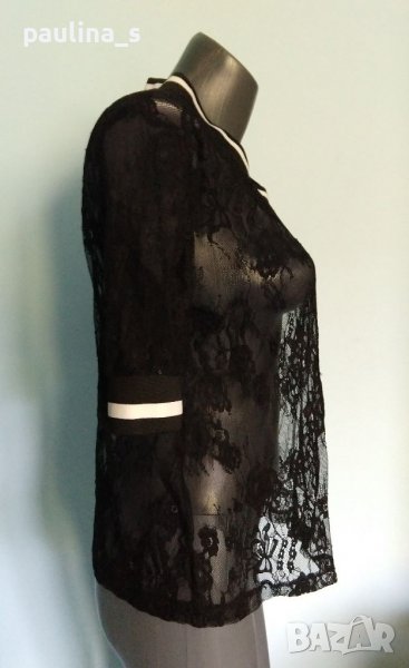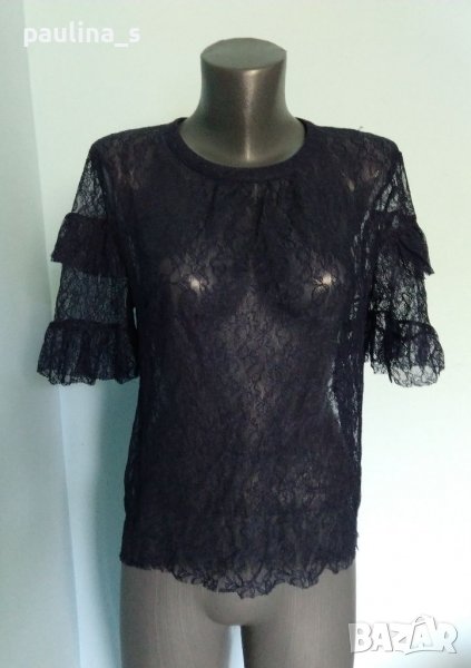 1️⃣. Дантелена официална блуза в тъмно синьо с волани на ръкавите "H&M" размер 2XL до 4XL, нова. Цената е крайна, без пазарлъци 29,99лв / 15 евро.