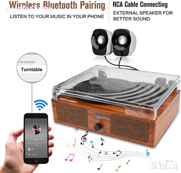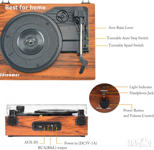 Грамофон с винилови грамофонни плочи1, блуут и запис Udreamer UD001-Y