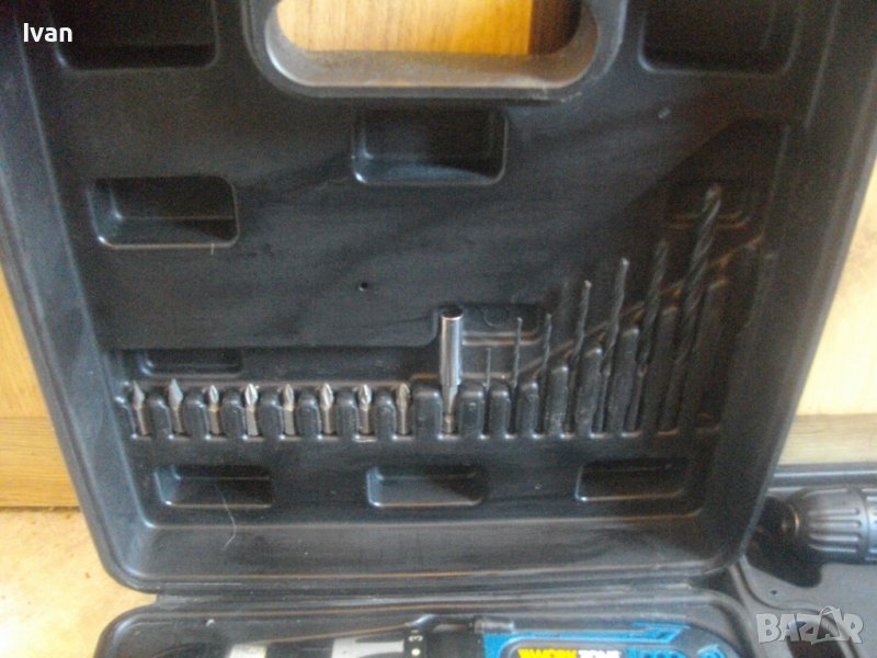 НА ДРУГИЯТ КОМПЛЕКТ БАТЕРИЯТА СЕ ЗАРЕЖДА ДОБРЕ - СИЛНА И МОЩНА Е, ДЪРЖИ СИЛЕН ЗАРЯД. БОДИТО РАБОТИ, НО НА МОМЕНТИ ПРИ ПРЕХВЪРЛЯНЕ НА ФУНКЦИИТЕ - УДАР - ПРОБИВ, ЗАПОЧВА ДА БУКСУВА. ЛИПСВА АДАПТЕР КЪМ КУТИЯТА НА ЗАРЯДНОТО.