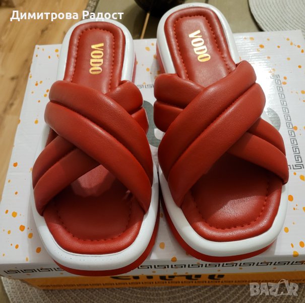 Дамски кожени чехли. Състояние ново. Цвят червен. Размер 39.Много удобни и практични за ежедневна употреба. За повече информация и поръчка на лични съобщения.