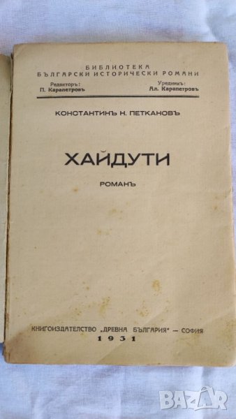 Антикварна книга Хайдути, Константин Петканов, първо издание 1031 година 167 страници. Колите, страниците не са разрязани. В много добро състояние за годините си.