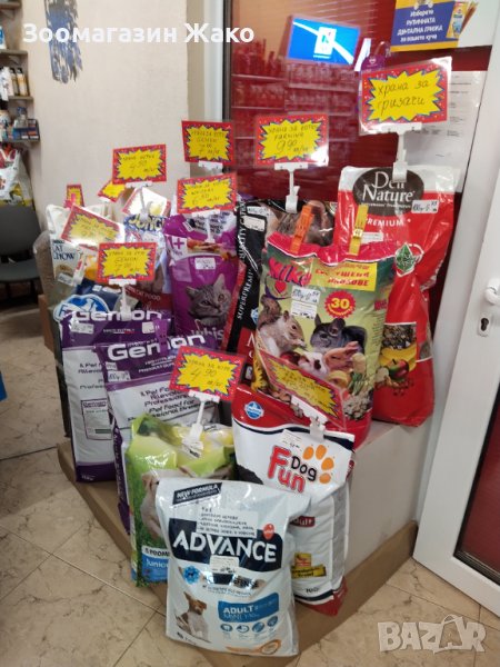 Зоомагазин Жако предлага голям избор от качествени храни за птици, гризачи, котки, кучета, рибки -пакетирани и насипни.