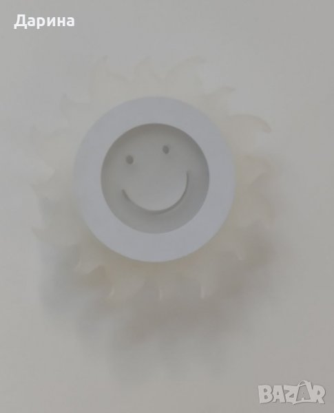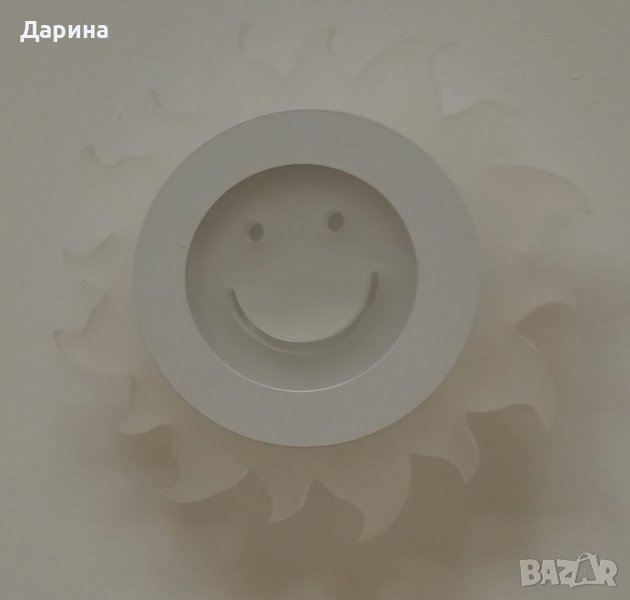 LED аплик във формата на усмихнато слънце от детската серия аплици е подходящ за декоративно осветително тяло за детска стая или друго помещение , в което искате да внесете допълнителна доза настроение и усмивки по лицата на любимите хора , Напрежение : AC220V . Мощност : 10W . Цветна температура : топло бяло .Размери : D = 19 , 5 см . НОВ .