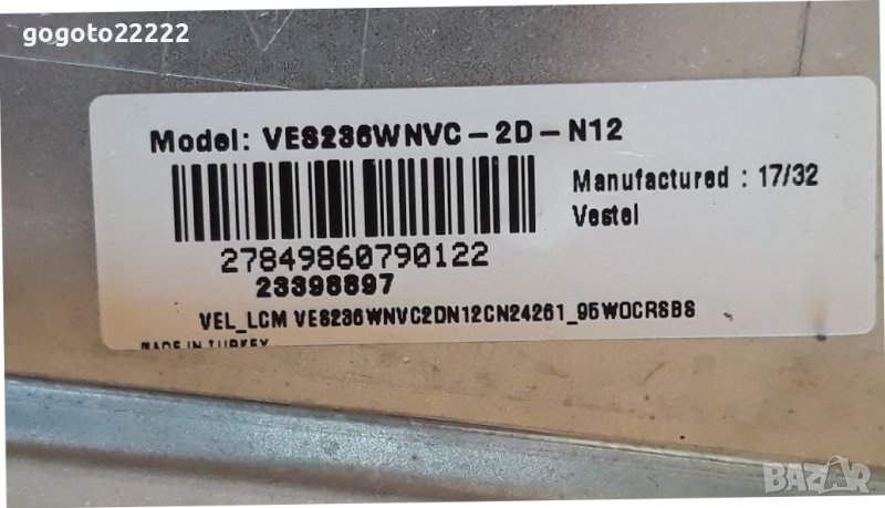Телевизора е със счупен дисплей всичко останало работи. MAIN board 17MB140 цена 35 лева продаден. POWER supply 17IPS61-5 продадена цена 25 лева. Подсветка продадена цена 20 лева. Матрица VES235WNVC-2D-N12 счупена. Стойка 15 лева.