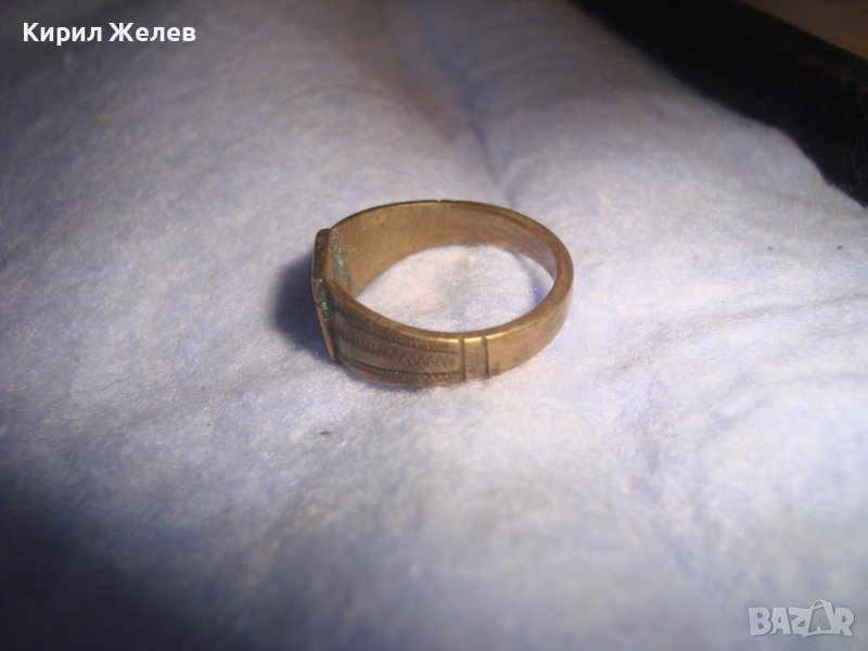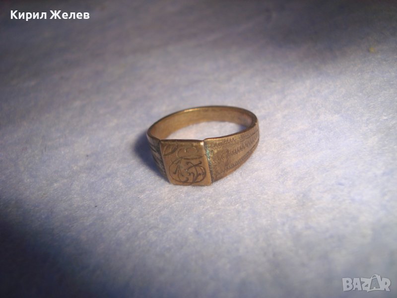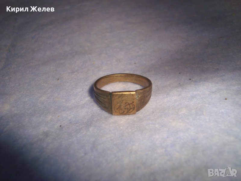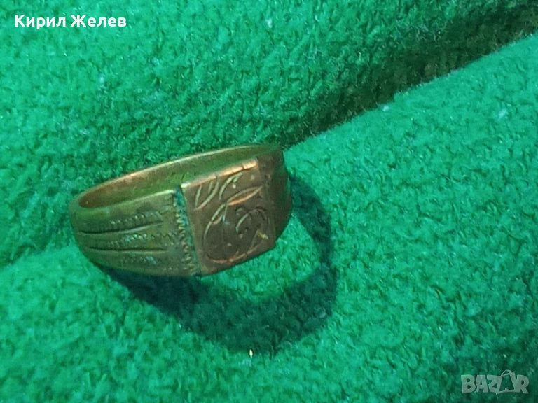 СТАРИНЕН ПОЗЛАТЕН БРОНЗОВ АРТ ДЕКО МАЙСТОРСКИ ПРЪСТЕН УНИКАТ с БУКВА - Е - РЪЧНО ОРНАМЕНТИРАН 28412