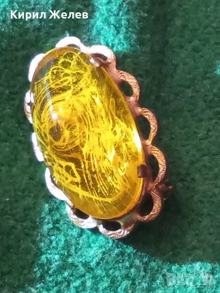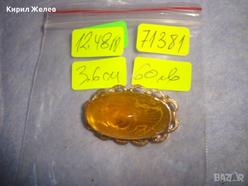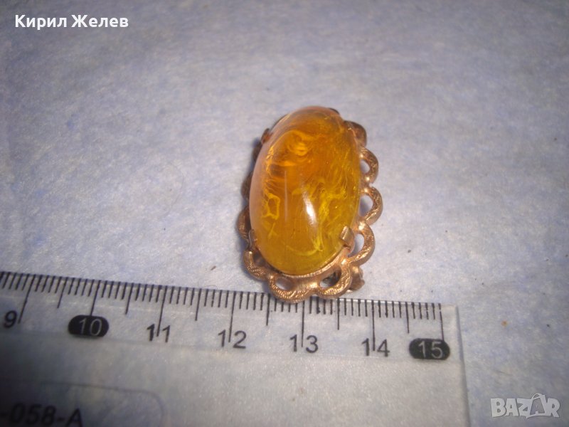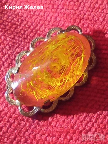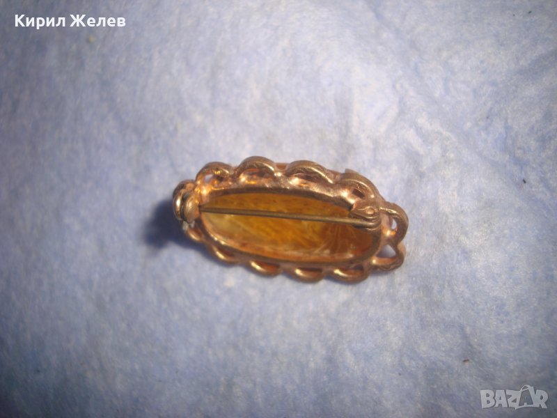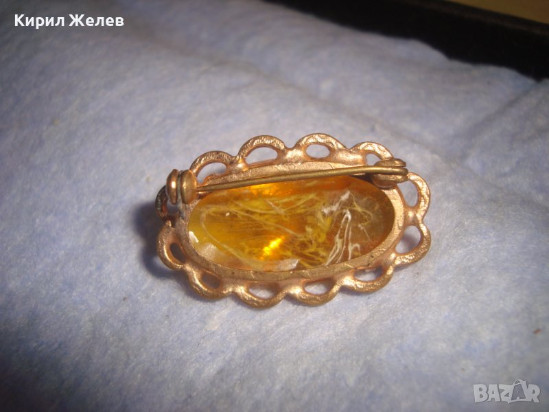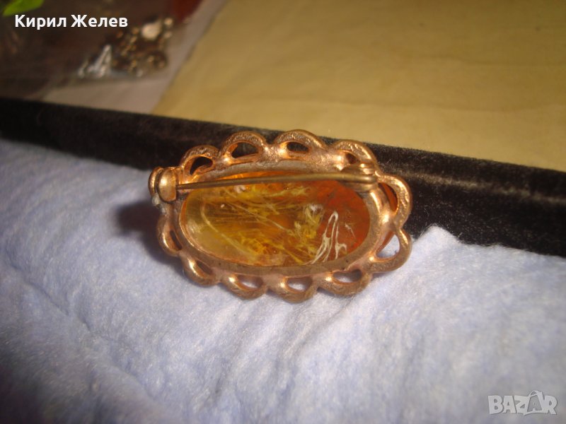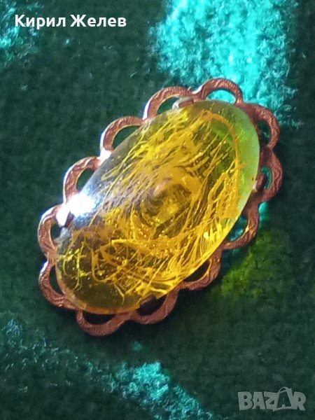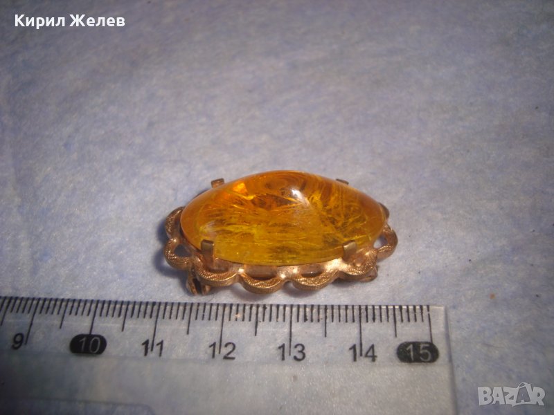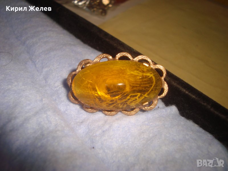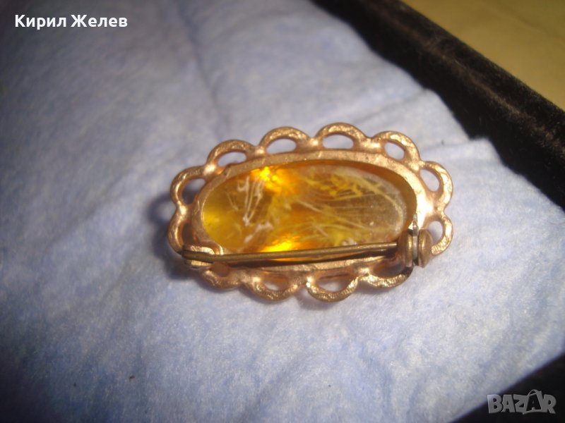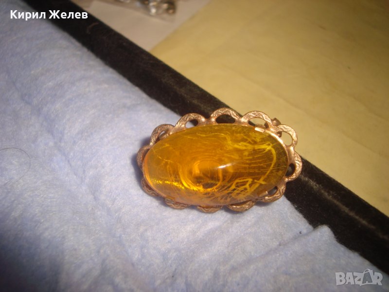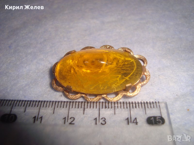 СТАРА ПОЗЛАТЕНА РЕТРО БРОШКА ТОПЕН КЕХЛИБАР / КАТАЛИН ЕСТЕСТВЕНА СМОЛА МАЙСТОРСКО ВИНТИДЖ БИЖУ 71381