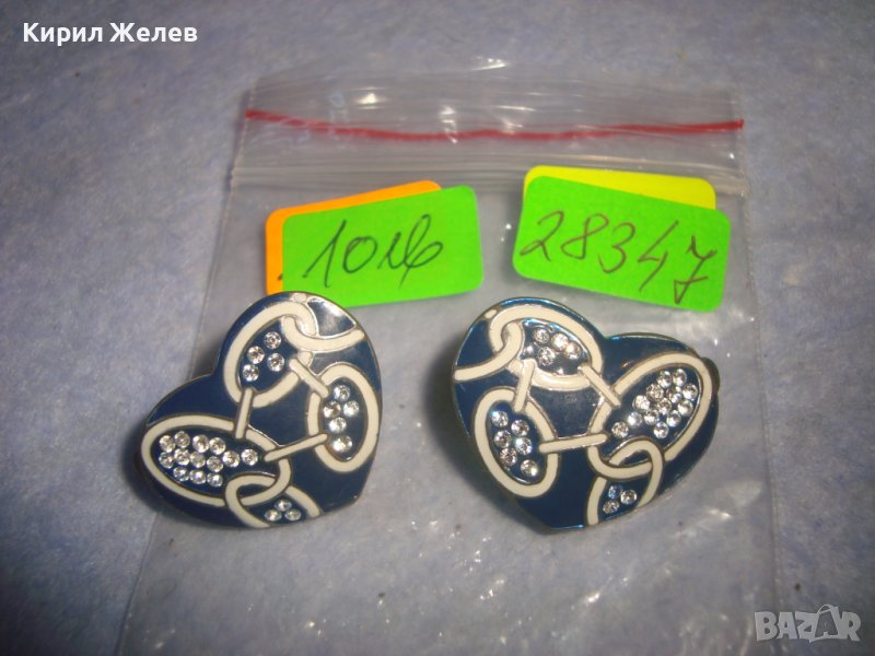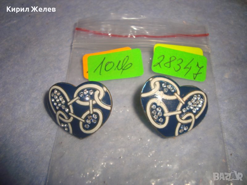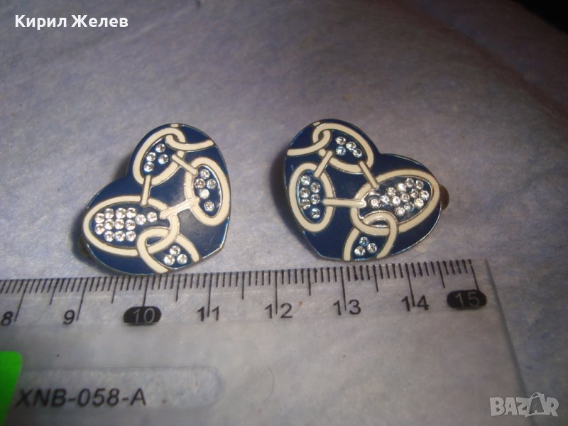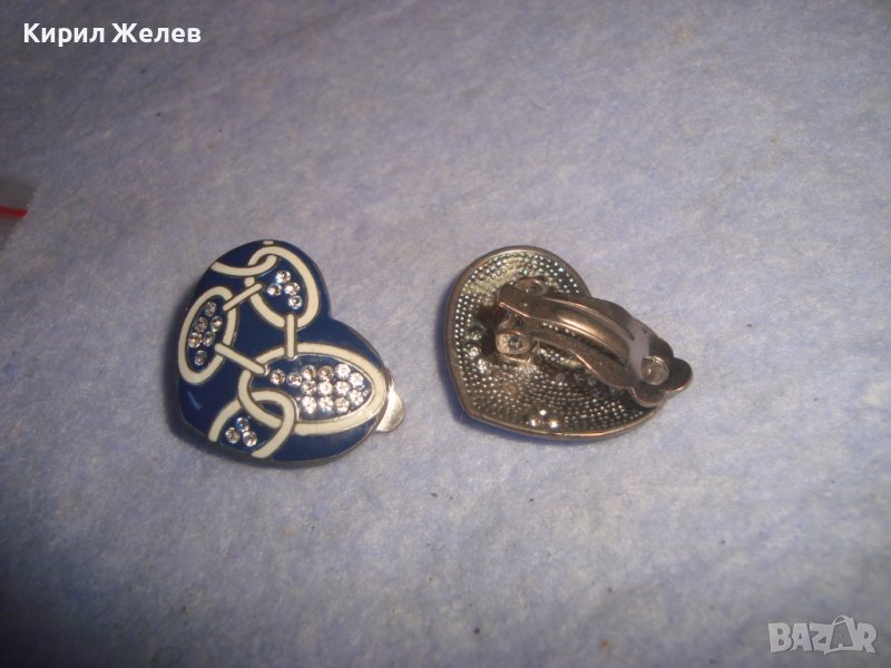 СТАРИ ПОСРЕБРЕНИ СЪРЦЕВИДНИ с ФАСЕТИРАНИ ЦИРКОНЧЕТА МЕДНИ ЕМАЙЛИРАНИ ВИНТИДЖ ОБЕЦИ 28347