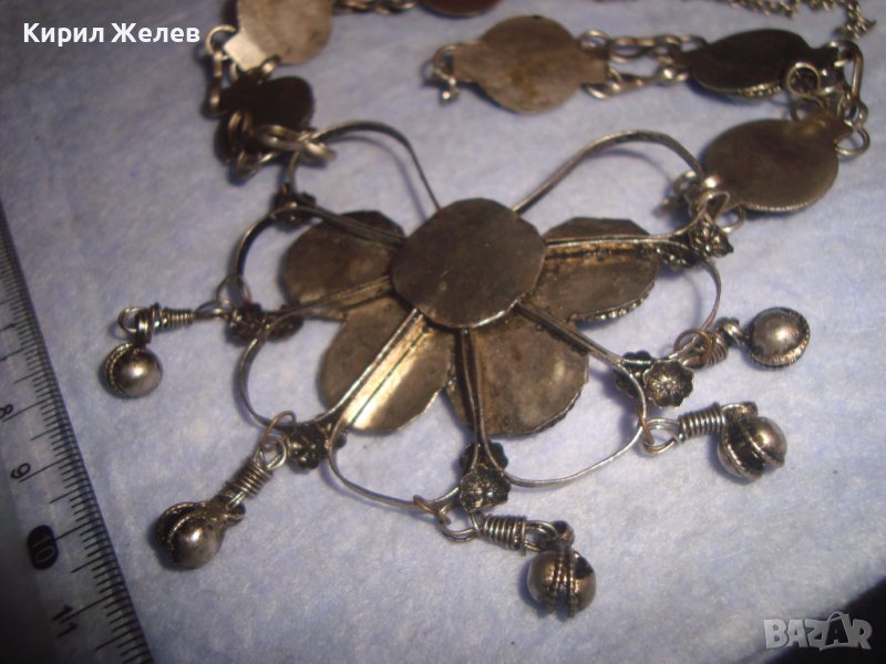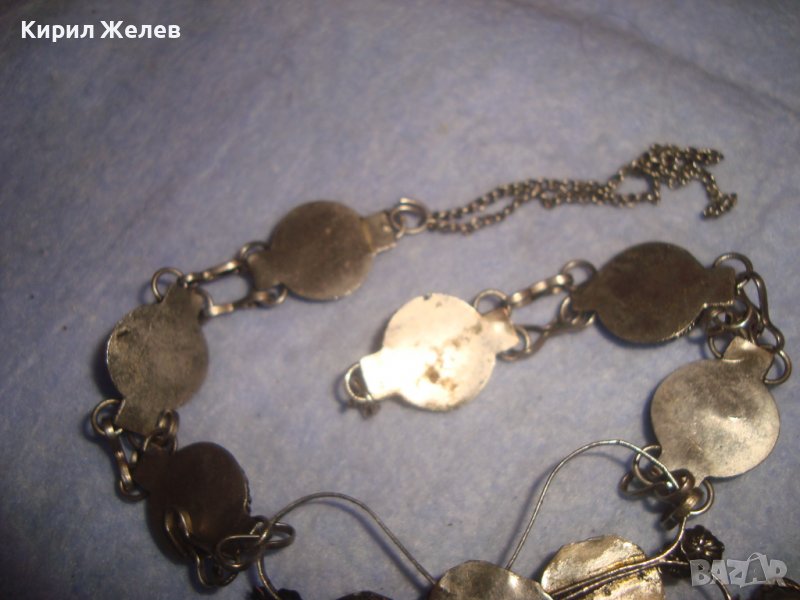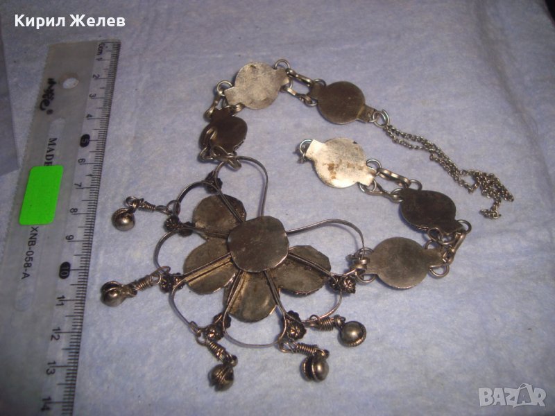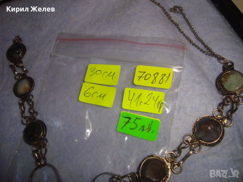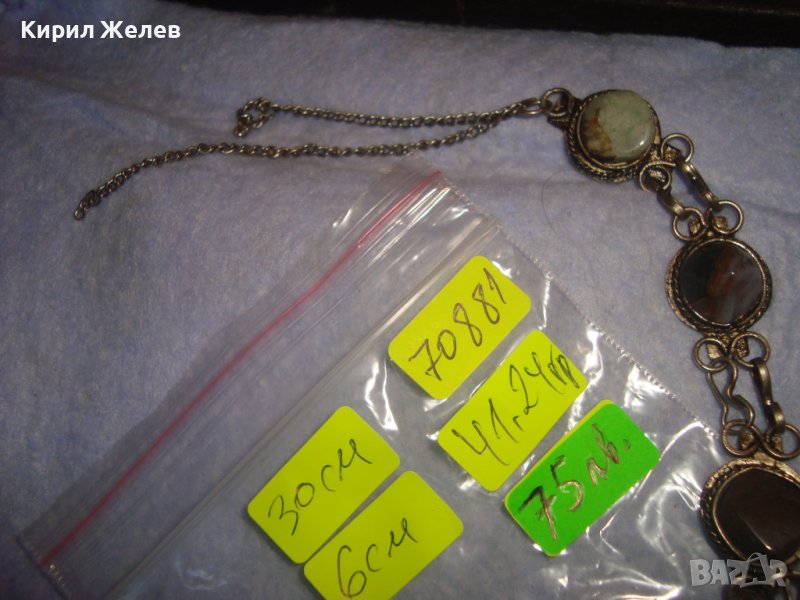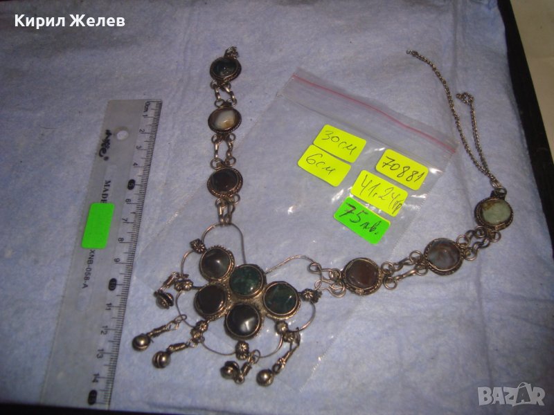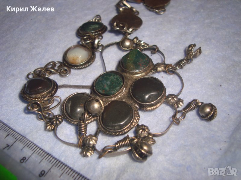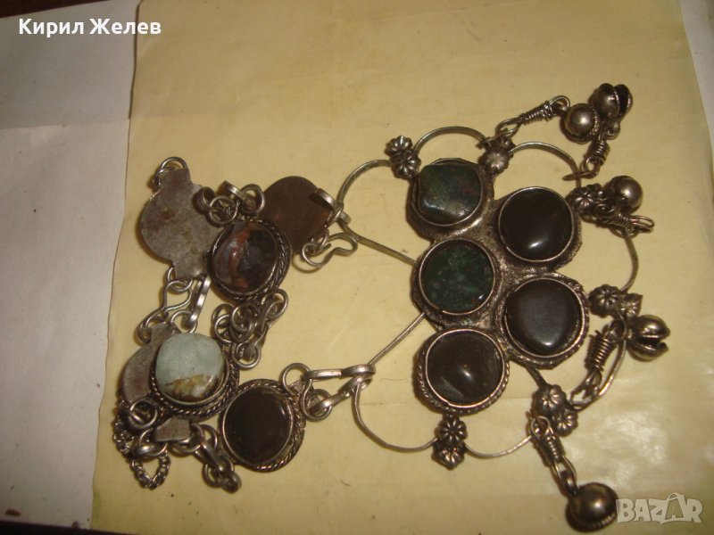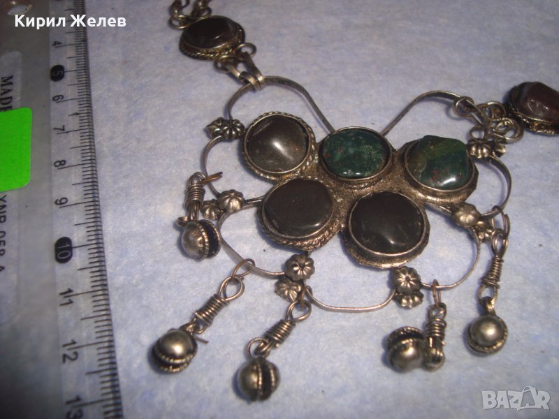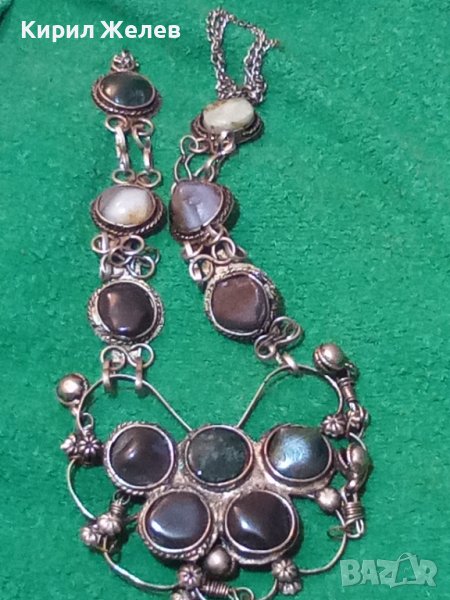 СТАРА СКЪПОЦЕННА ЕТНО СТИЛ ОРИЕНТАЛСКА ПОСРЕБРЕНА ОГЪРЛИЦА НАТУРАЛНИ КАМЪНИ НЕФРИТ АХАТ ЯСПИС 70881