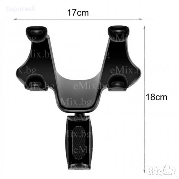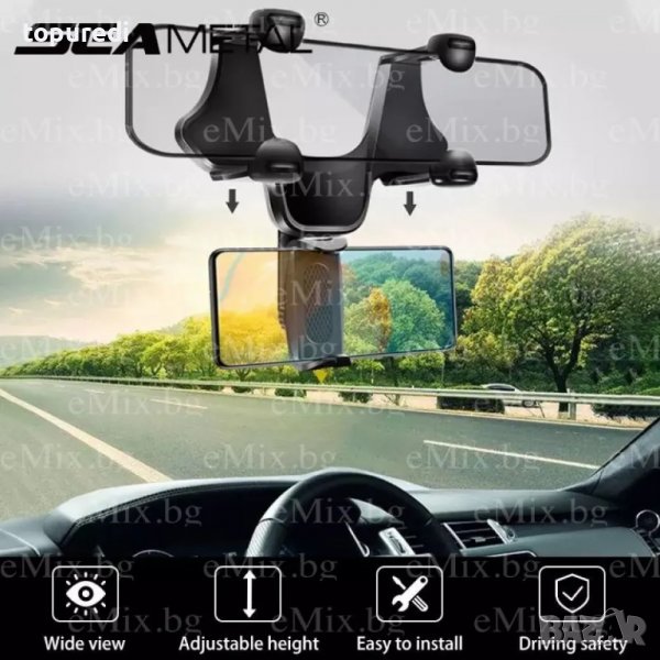 Автомобилната стойка за телефон е приложима за повечето мобилни телефони. С функция на въртене на 360 ° градуса за по-лесно регулиране на зрителния ъгъл. Стойката е със захващащи конструкции за огледалото на вашия автомобил, което я прави удобна и бърза при монтиране и сваляне. Изработена от висококачествена ABS пластмаса, което я прави издръжлива и устойчива при удар.