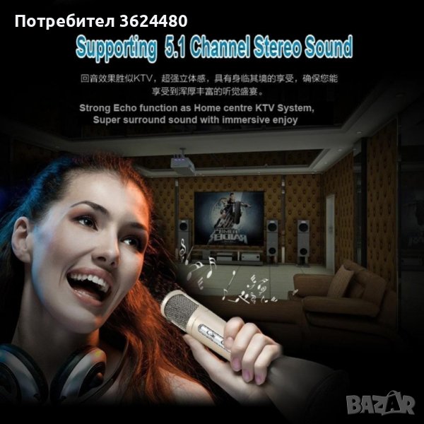 • Разполага с потенциометър за силата за звука на микрофона и потенциометър за ехо-ефекти.