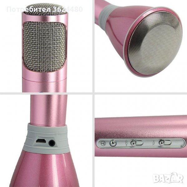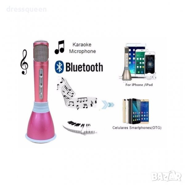 Безжичният блутут караоке микрофон с вграден говорител представлява комбинация от микрофон и говорител, свързващи се с всяко устройство с блутут – мобилен телефон, таблет, компютър и други. Така имате всичко, което ви е нужно – музика, микрофон и спийкър, от който се чува вашето изпълнение.