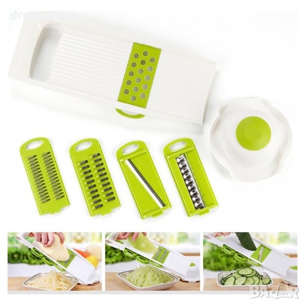 Ренде/резачка за рязане и стъргане на плодове,зеленчуци,месо,сирене,кашкавал и други храни с пет приставки.