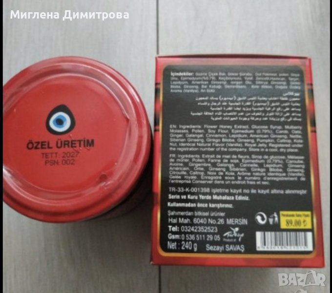 Състав: Епимедиум- 0,79 %, мед от цветя, глюкоза, черница- сироп, полен, соево брашно, рожков,