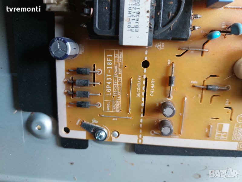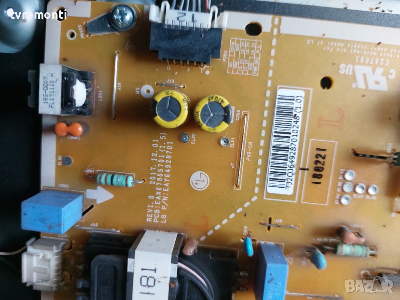 Захранване - EAX67865701 (1. 5) for, TV LG 43LK6100PLB борда е гарантирано работещ Демонтиран от телевизор LG модел 43LK6100PLB със счупен дисплей HC430DUN-SLUR2-A14X тествана от нашия техник