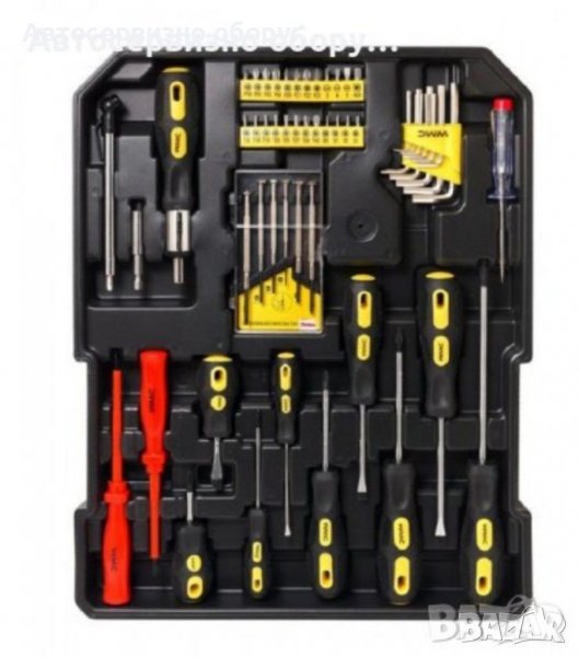 Сред инструментите ще откриете отвертки, френски ключове, клещи, макетни ножове, шестограни и много други, разпределени на четири нива, както следва: