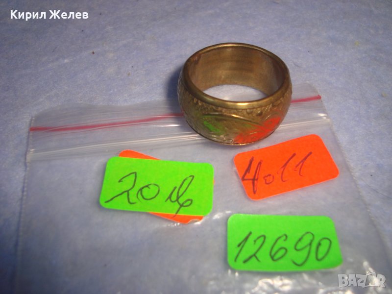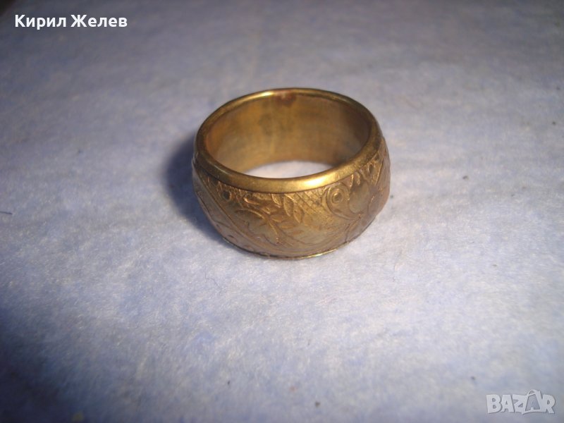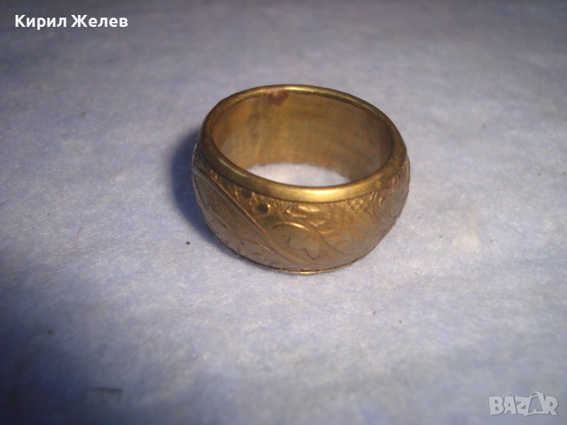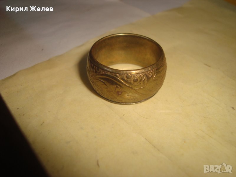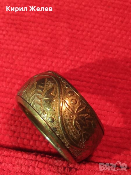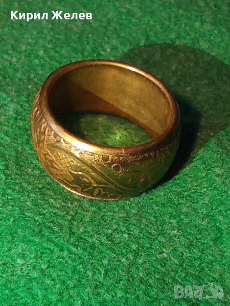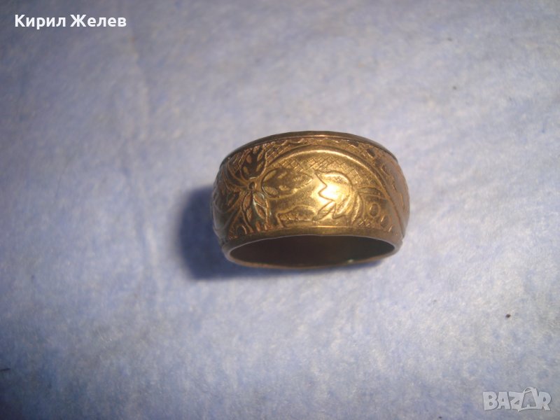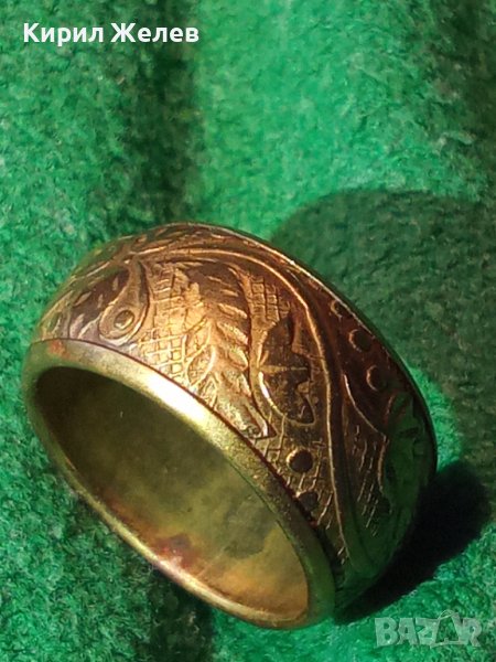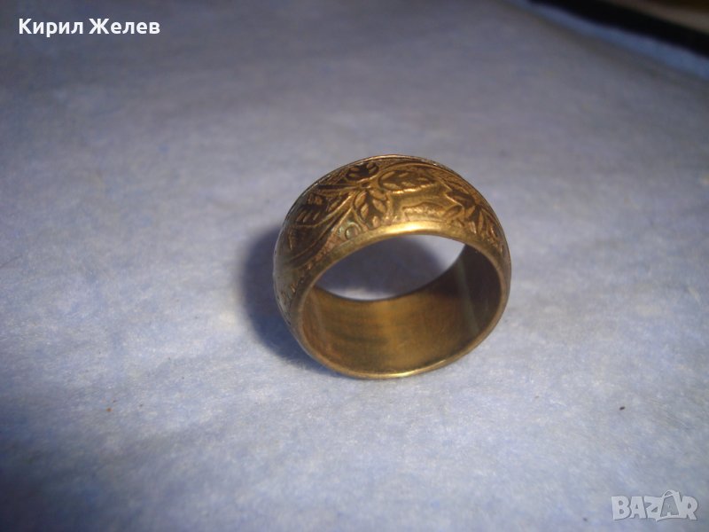 СТАРИНЕН БРОНЗОВ ПОЗЛАТЕН ФЛОРАЛНО МАЙСТОРСКИ ОРНАМЕНТИРАН БЕЛ ЕПОК Стил РЕТРО ПРЪСТЕН - ХАЛКА 12690