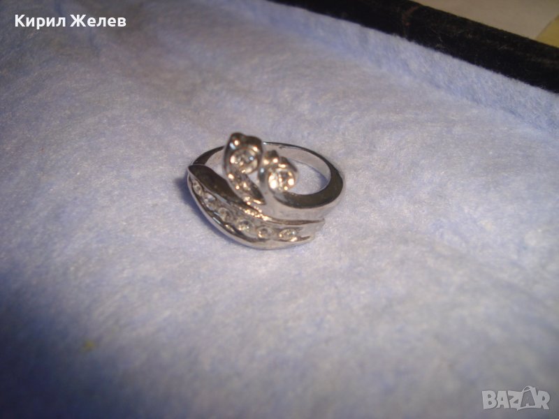 НЕЖЕН ФИГУРАЛЕН АРТ ПРЪСТЕН - ЛЕБЕД с КРИСТАЛИ СВАРОВСКИ и БЯЛА ПОЗЛАТА 7673
