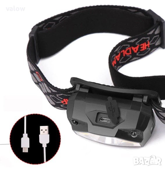 Челник / фенер за глава, сензор за движение, вградена батерия