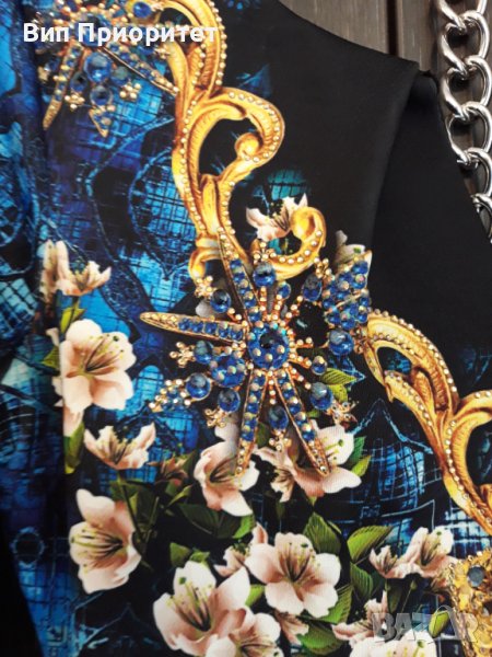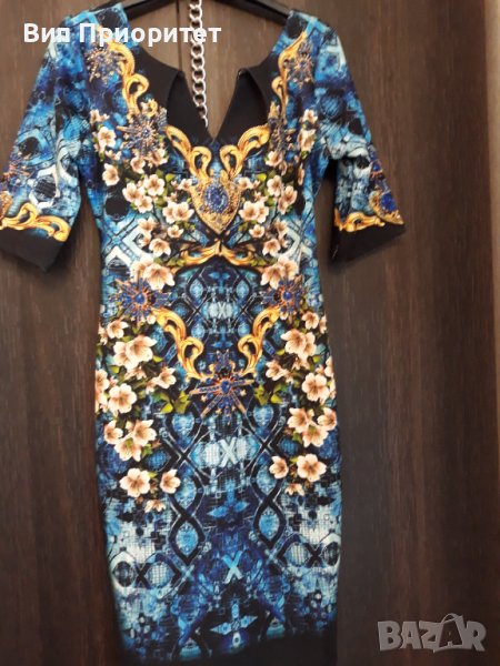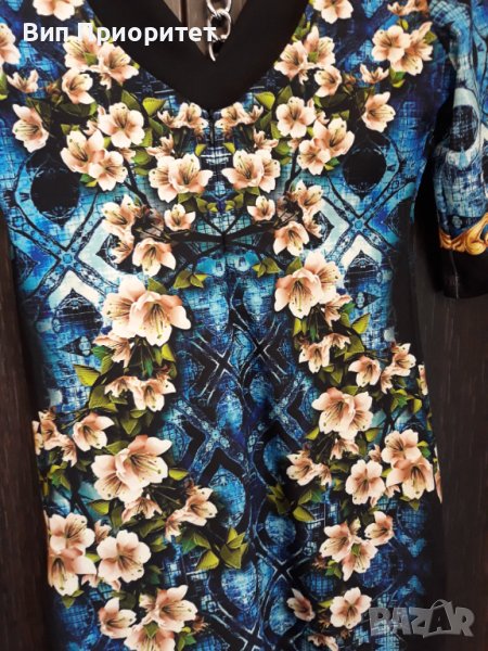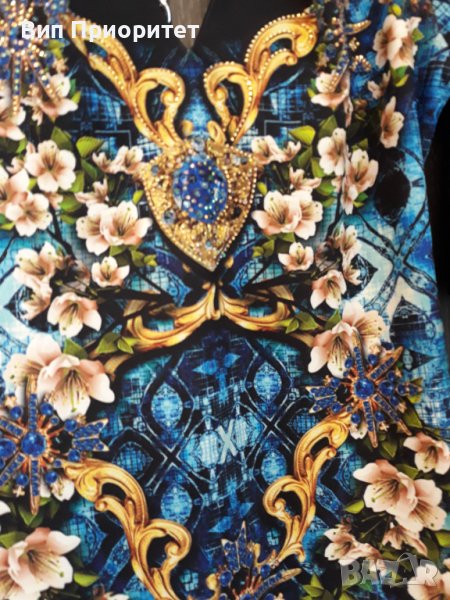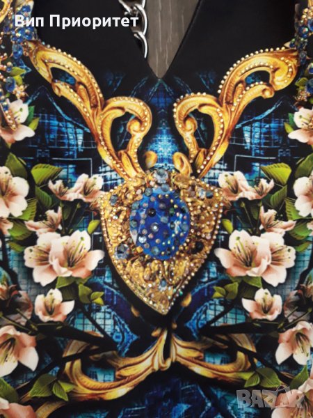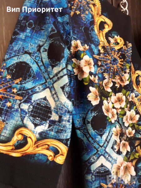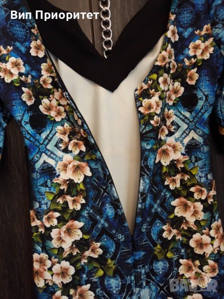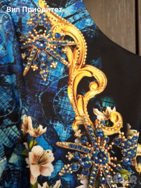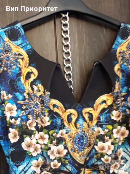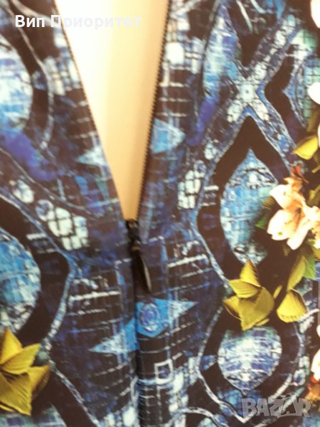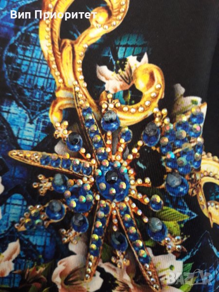 Много официална рокля скъпа маркова SECRET SANTA R стегната материя , ефектен принт с магнолии и диаманти+ блясък от монтирани камъни, 3/4 ръкав, много елегантна, изискан модел, с ципна гърба, перфектен шев и качество.