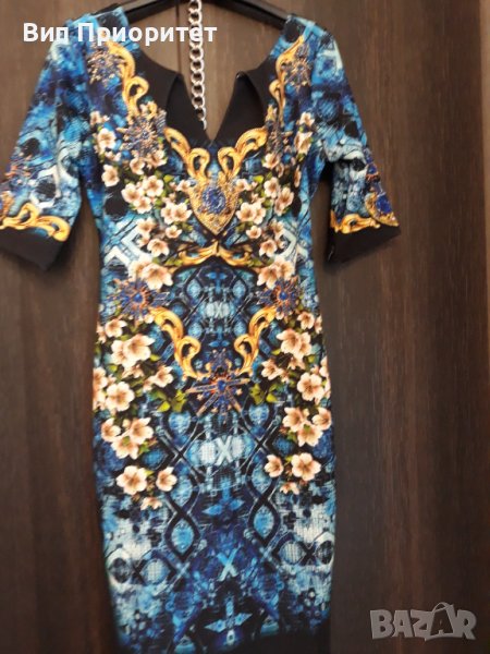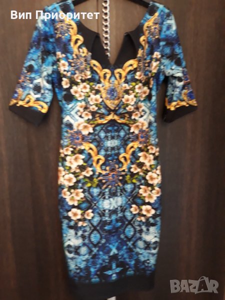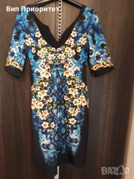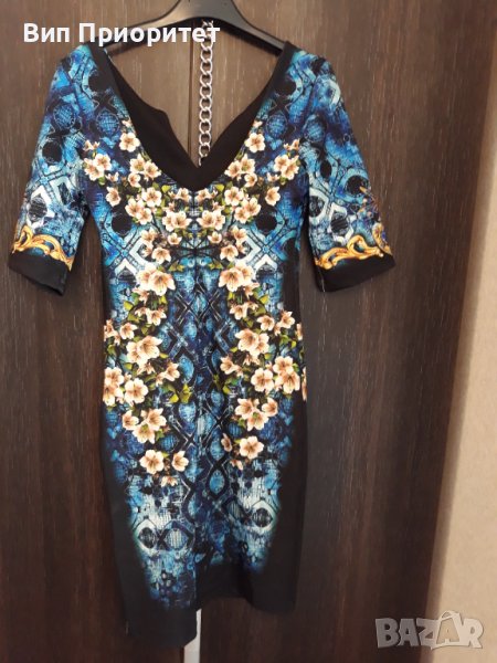 Много официална рокля скъпа маркова SECRET SANTA R стегната материя , ефектен принтс магнолии и диам → Обява 37417791