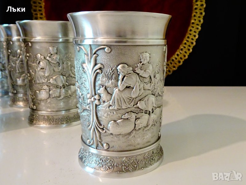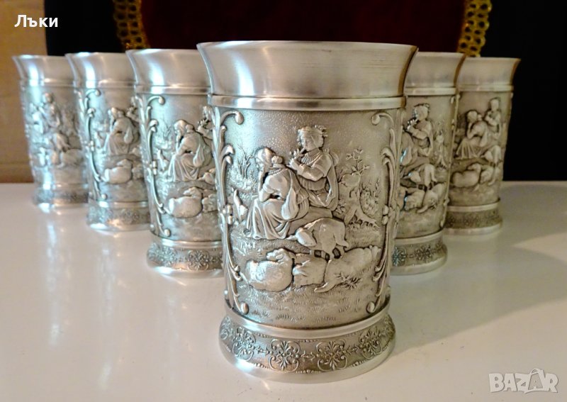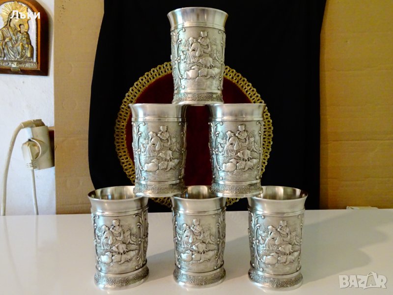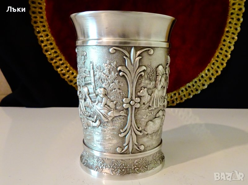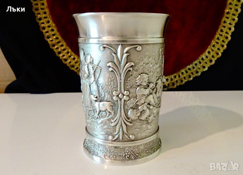 ръчна изработка от 95 % калай и 5% сребро,маркирана.Декорирана с най-красивите три
