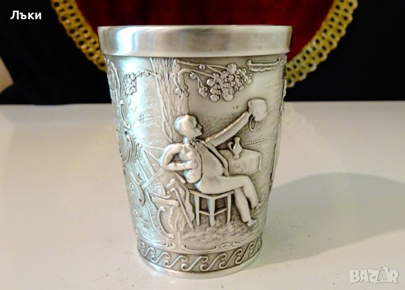 Старинна немска чаша за вино,ръчно изработена от 95% калай и 5% сребро,маркирана.Чашата има