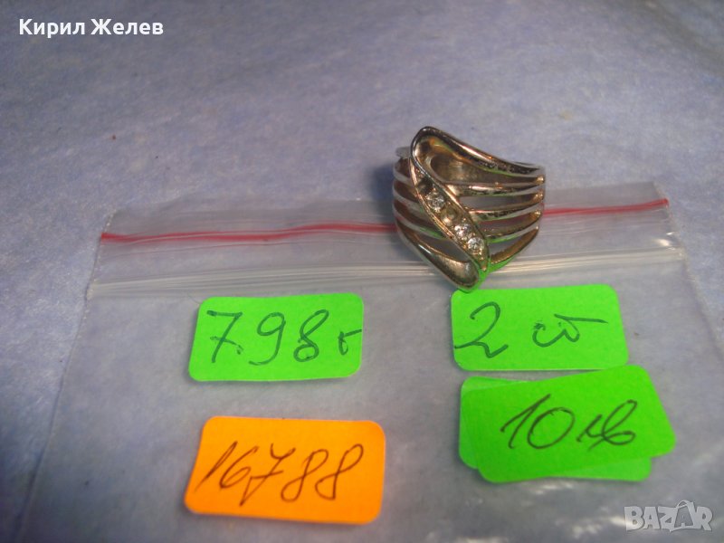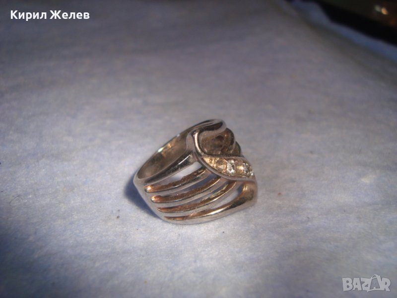 СТАР ПОСРЕБРЕН АЖУРЕН ВИНТИДЖ АРТ КРИСТАЛЕН ПРЪСТЕН 16788