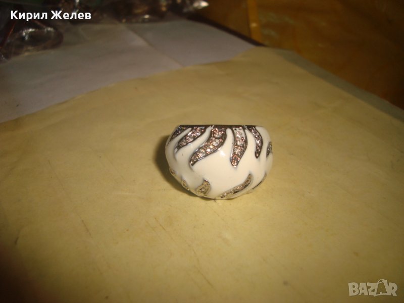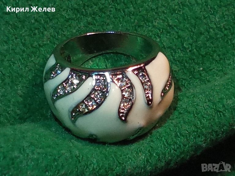 СТИЛЕН КРАСИВ ЕМАЙЛИРАН КРИСТАЛЕН АРТ ПРЪСТЕН с БЯЛА ПОЗЛАТА 27611