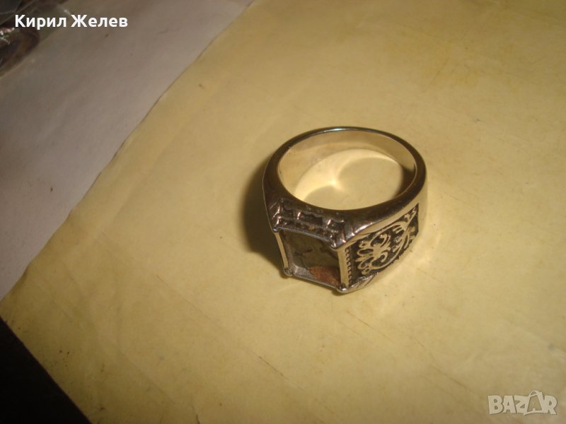 СТАР СРЕБРИСТ ОРНАМЕНТИРАН АРТ ПРЪСТЕН НЕРЪЖДАЕМА СТОМАНА с ГНЕЗДО за ВГРАЖДАНЕ на КАМЪК 8568