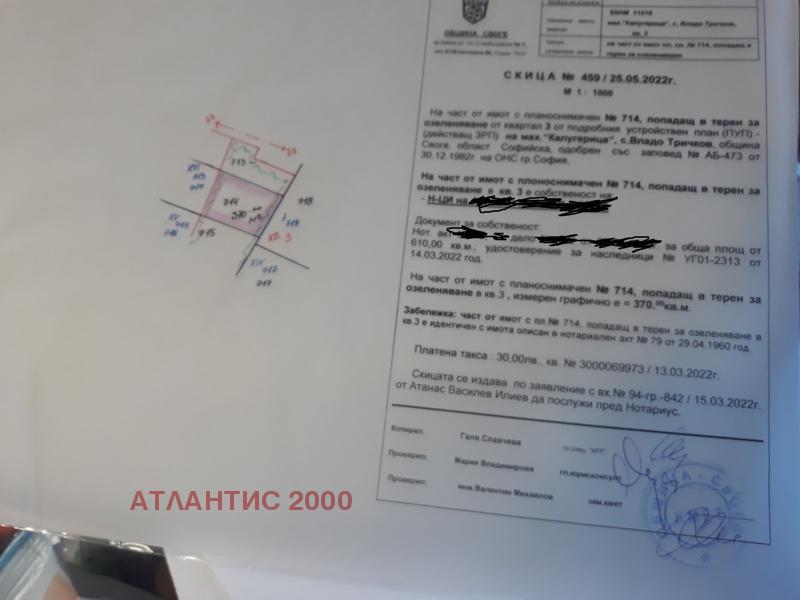 Продава ПАРЦЕЛ, с. Владо Тричков, област София област → Обява 37424958